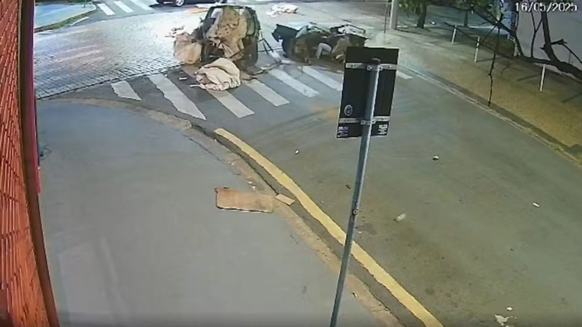 Câmeras de segurança registraram um momento inesperado durante um acidente: um carro se partiu ao meio após colidir com outro veículo, mas continuo…