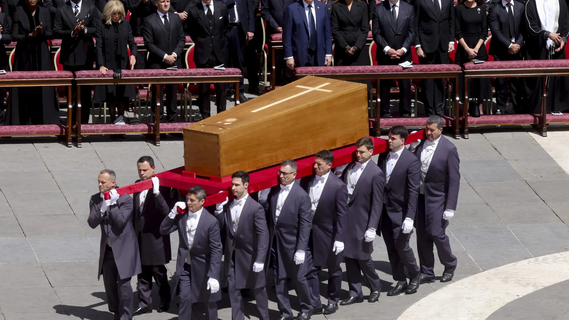 Assim que o caixão fechado foi colocado em frente ao altar externo da Basílica de São Pedro, o corpo de Francisco foi recebido com longos e emocionantes aplausos dos fiéis, que se aglomeravam na praça desde a madrugada.