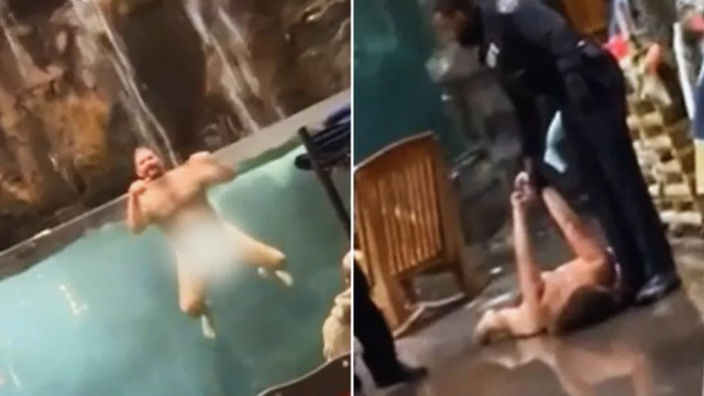 O norte-americano nadou por cerca de cinco minutos e depois tentou sair. No entanto, acabou por cair, ficando inconsciente.