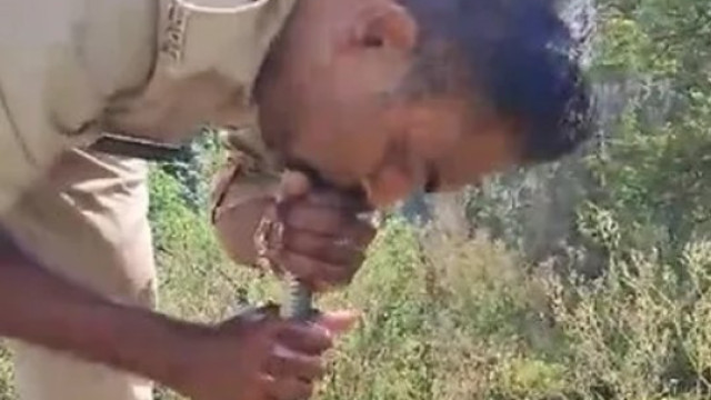 Um policial de Madhya Pradesh, na Índia, salvou uma cobra venenosa com a manobra de primeiros socorros vulgarmente conhecida por ‘respiração boca a boca’.